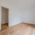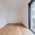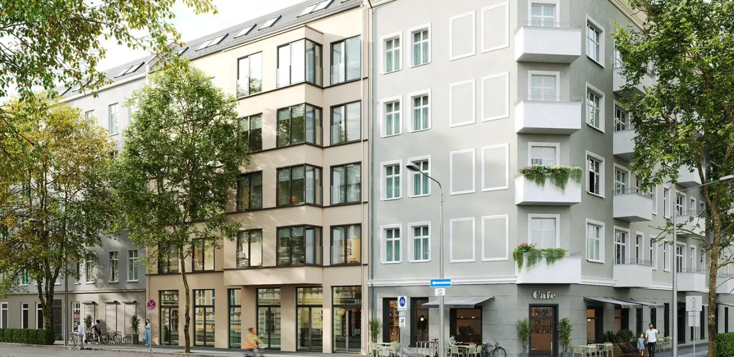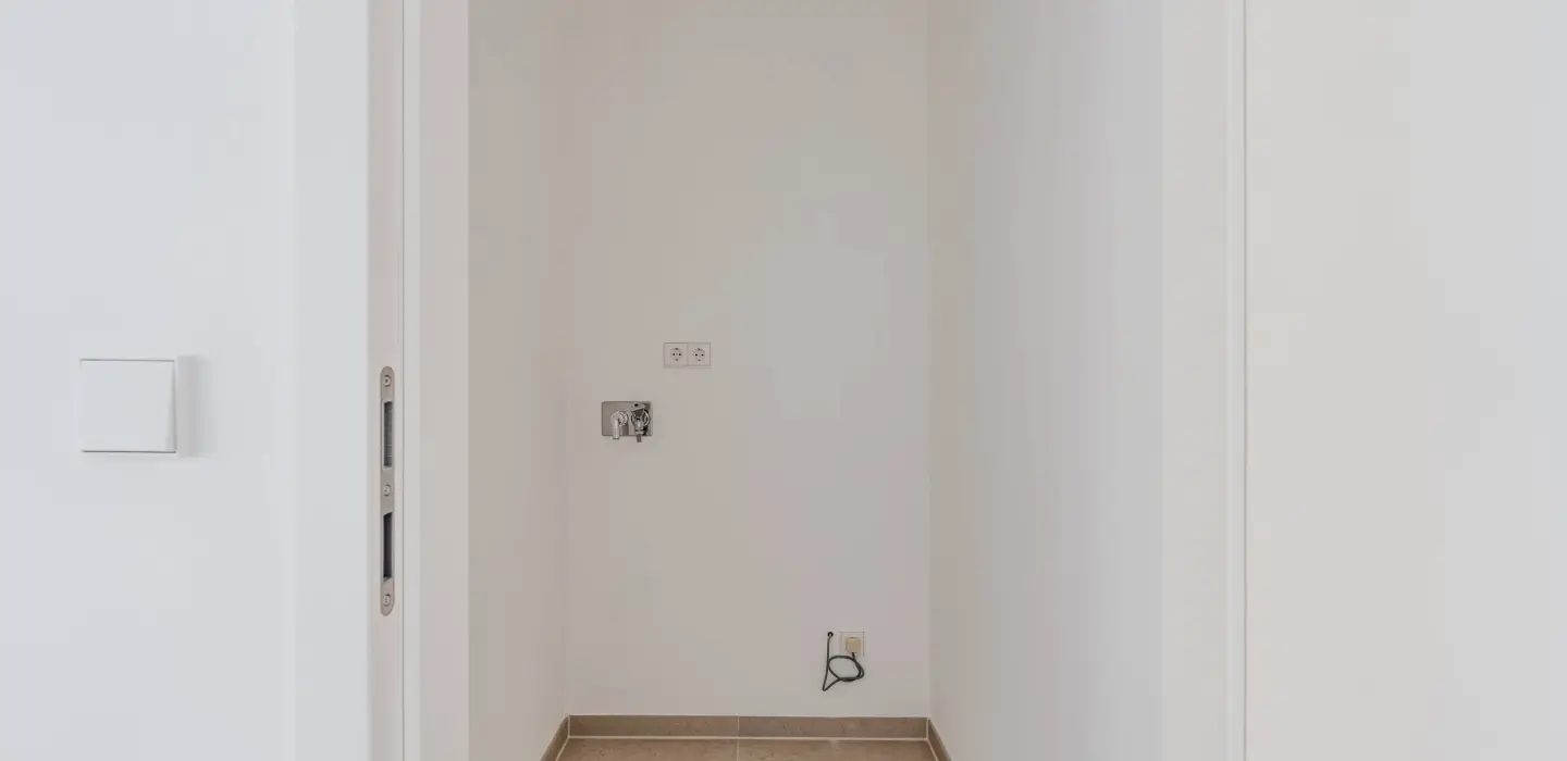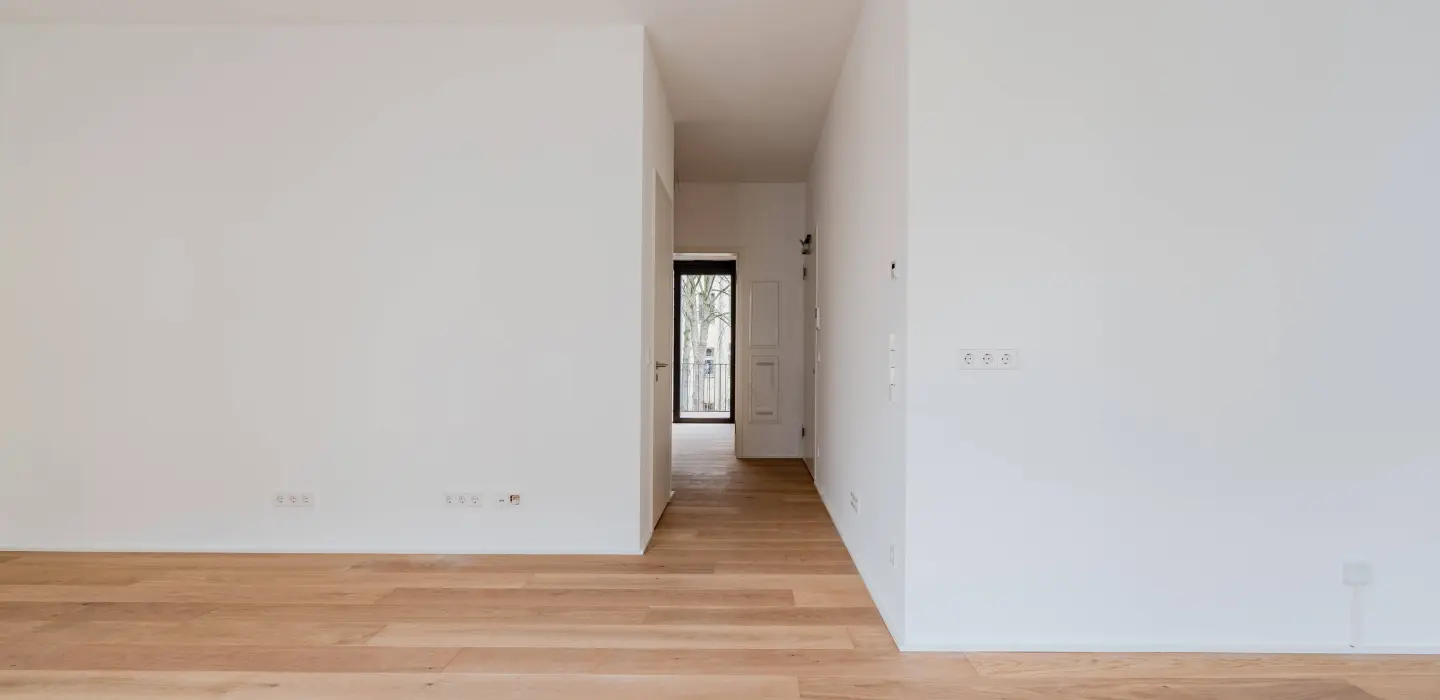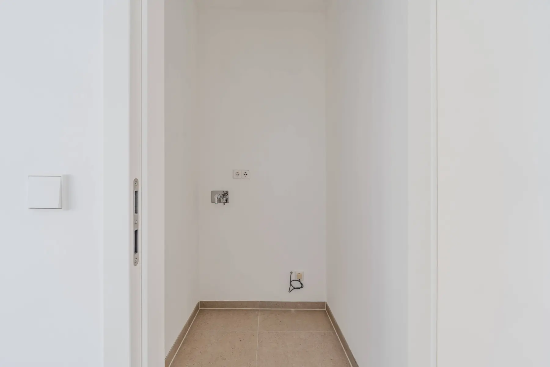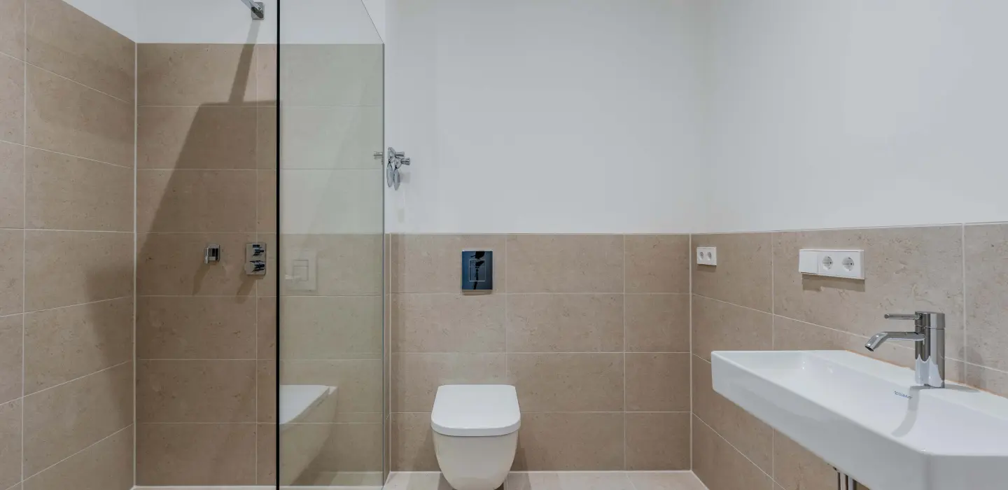 Der offene Wohnbereich bietet viel Raum für eine anspruchsvolle Küchen- und Esslösung und ist mit breiten Eichendielen ausgestattet. Das Schlafzimmer ist zum ruhigen Innenhof orientiert und verfügt über einen direkten Zugang zum Balkon mit Holzbelag und filigranem Stahlgeländer. Das Badezimmer präsentiert sich in warmen Naturtönen und ist mit einer bodengleichen Regendusche ausgestattet. Ein separater Hauswirtschaftsraum dient als funktionale Ergänzung. Die Wohnung ist Teil eines architektonisch anspruchsvollen Neubaus, entworfen von HeimBalp Berlin, mit fünfjähriger Gewährleistung.