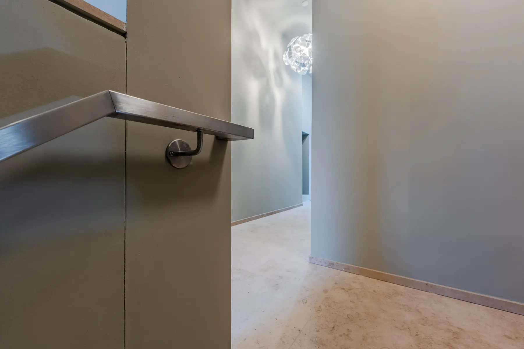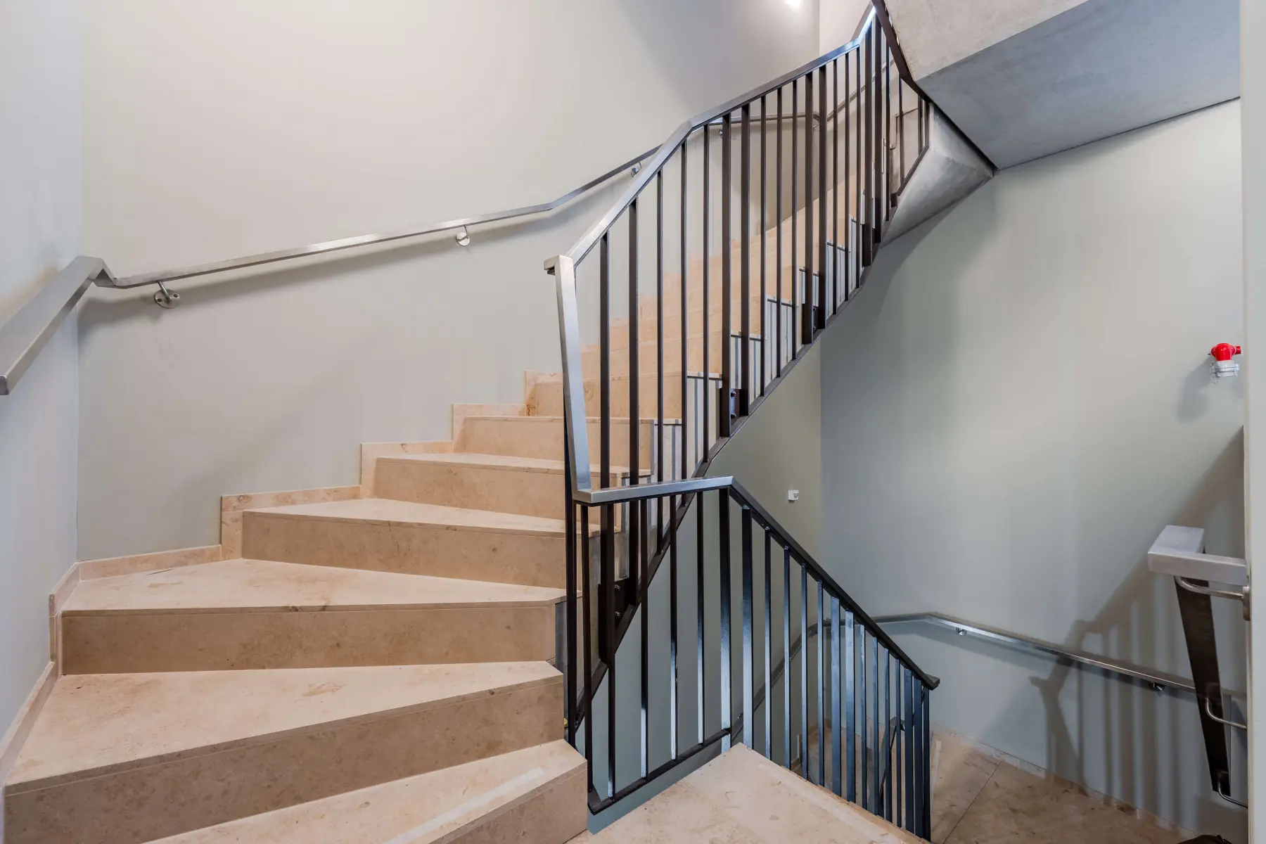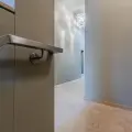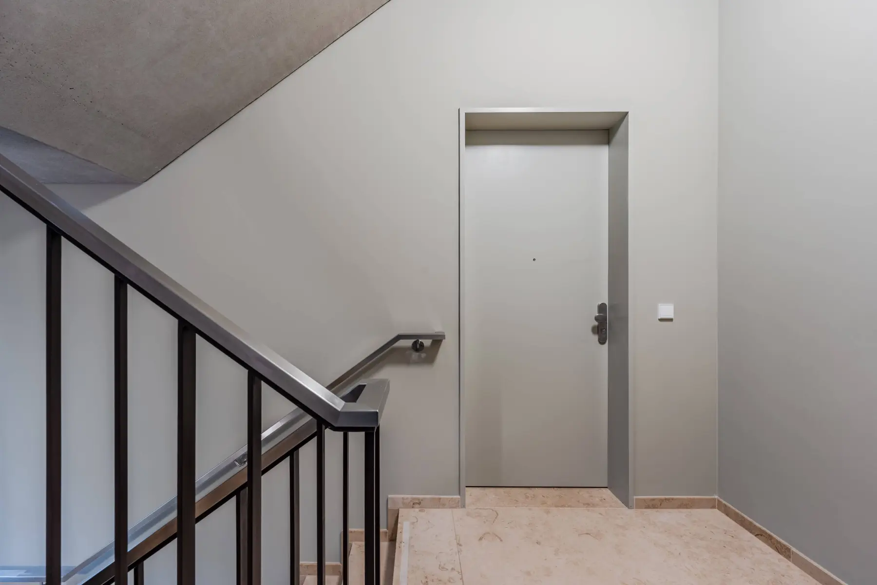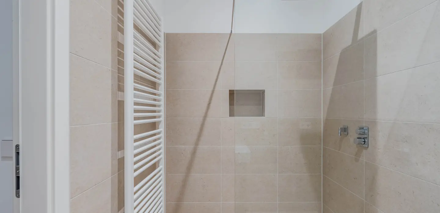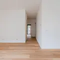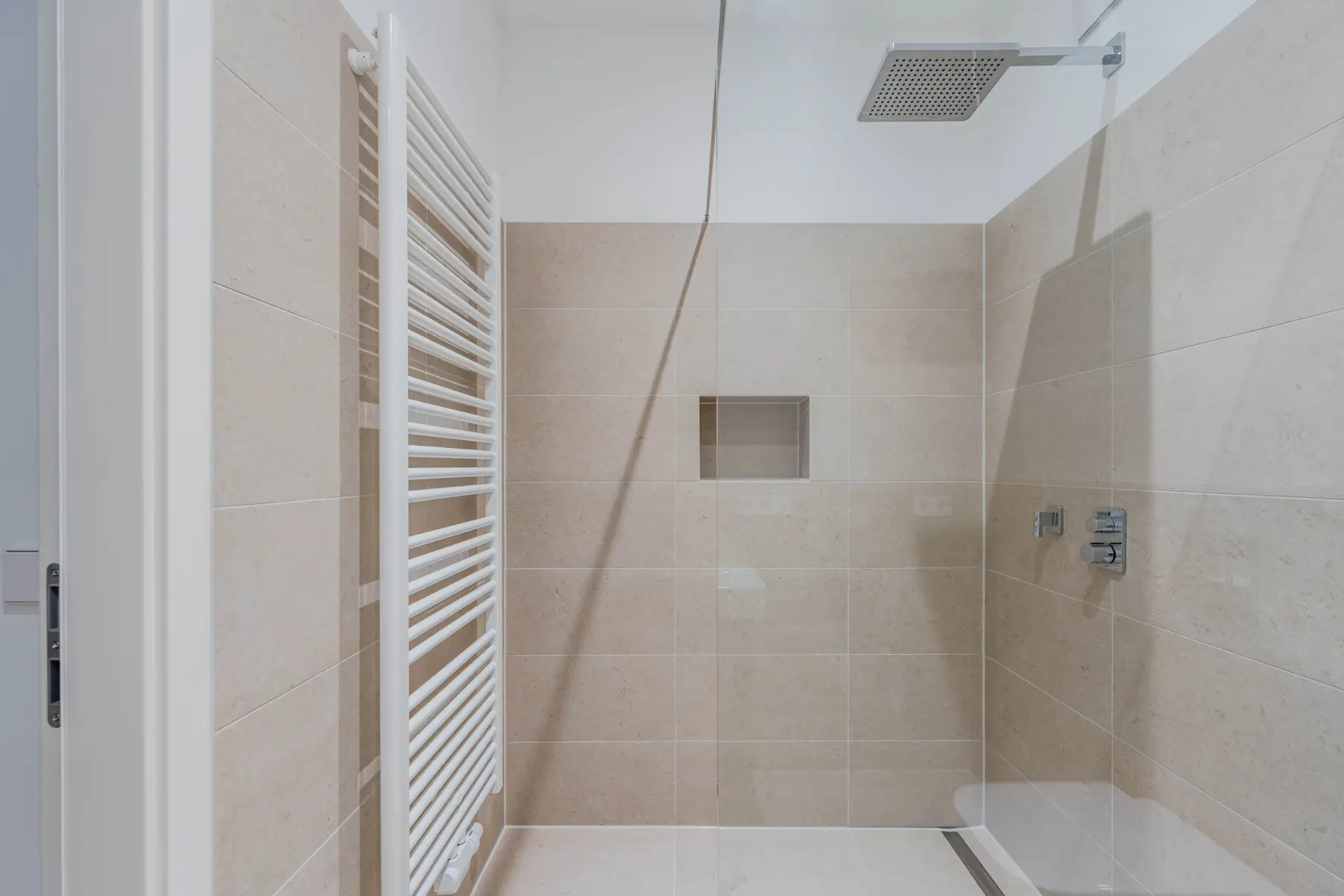 Der offene Wohnbereich bietet viel Raum für eine anspruchsvolle Küchen- und Esslösung und ist mit breiten Eichendielen ausgestattet. Das Schlafzimmer ist zum ruhigen Innenhof orientiert und verfügt über einen direkten Zugang zum Balkon mit Holzbelag und filigranem Stahlgeländer. Das Badezimmer präsentiert sich in warmen Naturtönen und ist mit einer bodengleichen Regendusche ausgestattet. Ein separater Hauswirtschaftsraum dient als funktionale Ergänzung. Die Wohnung ist Teil eines architektonisch anspruchsvollen Neubaus, entworfen von HeimBalp Berlin, mit fünfjähriger Gewährleistung.
